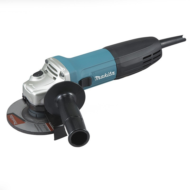 Amoladora Makita modelo GA9050  230mm., sin bloqueo de interruptor y doble aislamiento. Con interruptor de gatillo grande para un fácil manejo. Mango lateral extraíble, se puede montar al lado izquierdo o derecho. Formato del cabezal, más robusto y duradero. Protección contra la perdida de grasa, así como contra el polvo, con junta torca en el cabezal,...