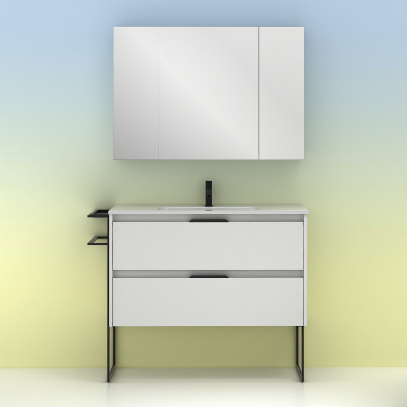 KEIKO ES UN MUEBLE DE BAÑO MODERNO incorpora un diseño industrial muy actual y posee una gran funcionalidad gracias a la gran capacidad de sus cajones y al toallero y bandeja auxiliares. Resulta perfecto para un estilo de vida moderno y urbano.