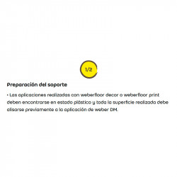 Protector superficial para pavimento impreso. Resina impermeabilizante de acabado para la protección de pavimentos impresos como weberfloor decor y weberfloor print y realzar su textura y color. También puede utilizarse, con el paso del tiempo, para su conservación y mantenimiento. Características principales: Resistencia a las manchas Bajo impacto...
