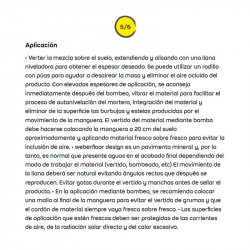 Protector superficial para pavimento impreso. Resina impermeabilizante de acabado para la protección de pavimentos impresos como weberfloor decor y weberfloor print y realzar su textura y color. También puede utilizarse, con el paso del tiempo, para su conservación y mantenimiento. Características principales: Resistencia a las manchas Bajo impacto...